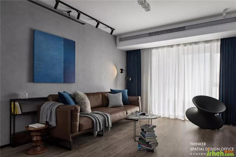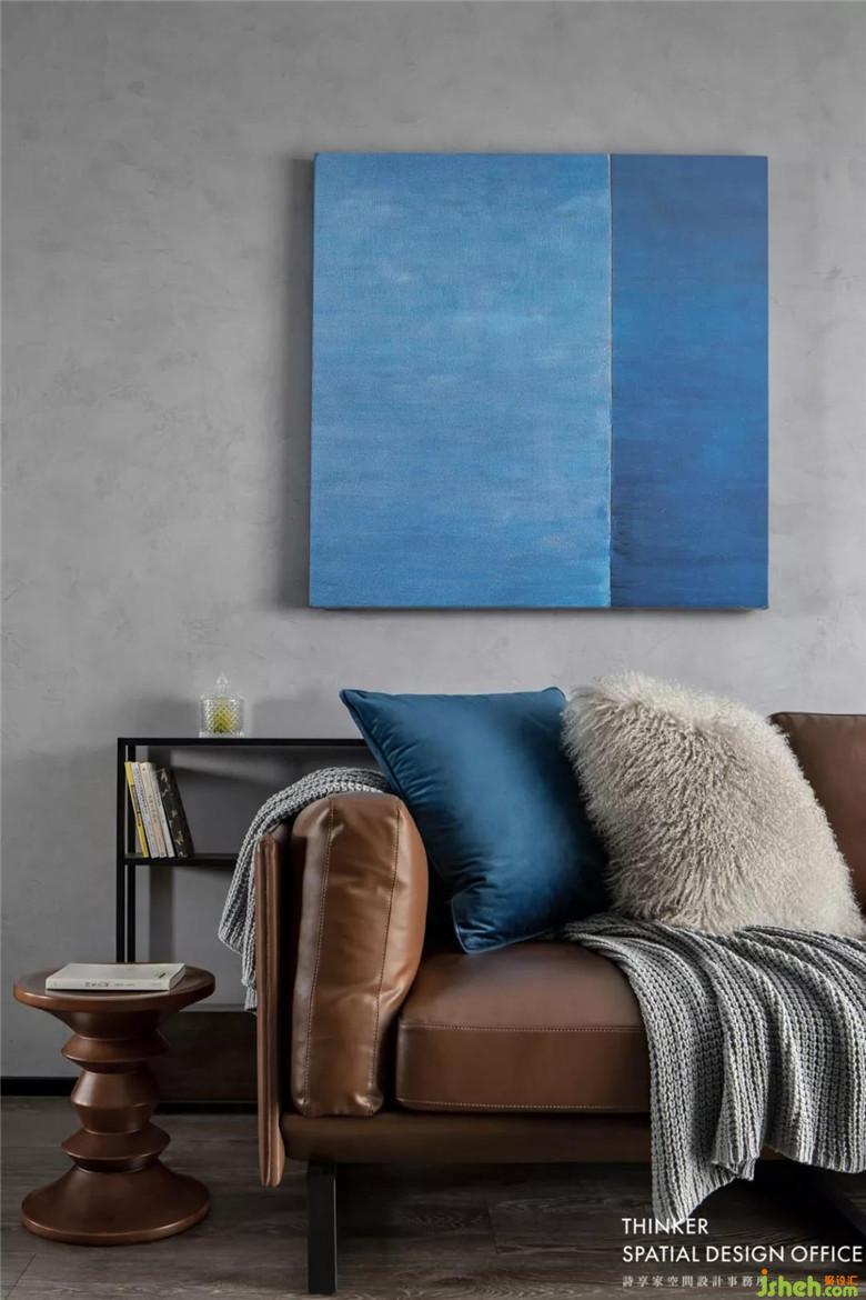 克萊因藍(lán)的窗簾、掛畫、抱枕是這個(gè)空間的亮點(diǎn),那是天空的顏色,是水的顏色,是空氣的顏色,給予人們無限的想象力。