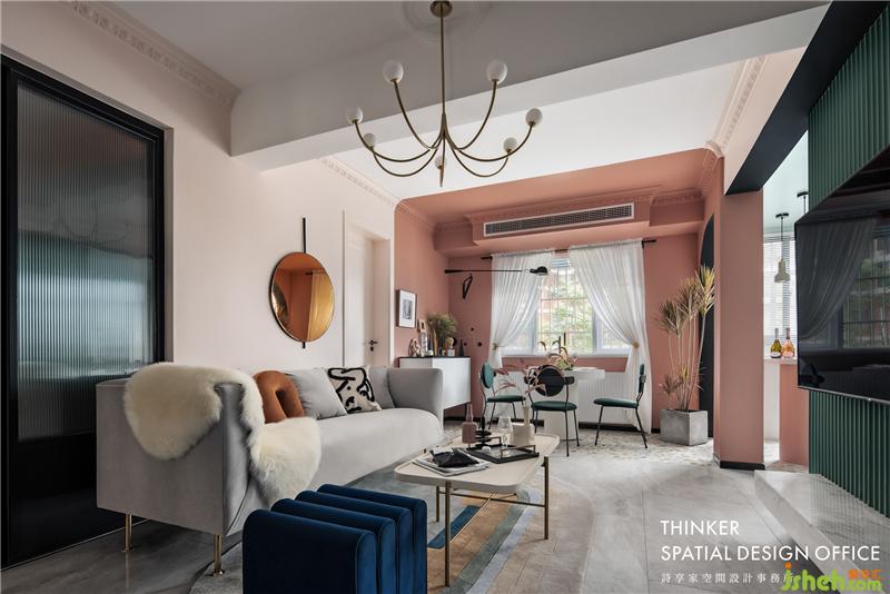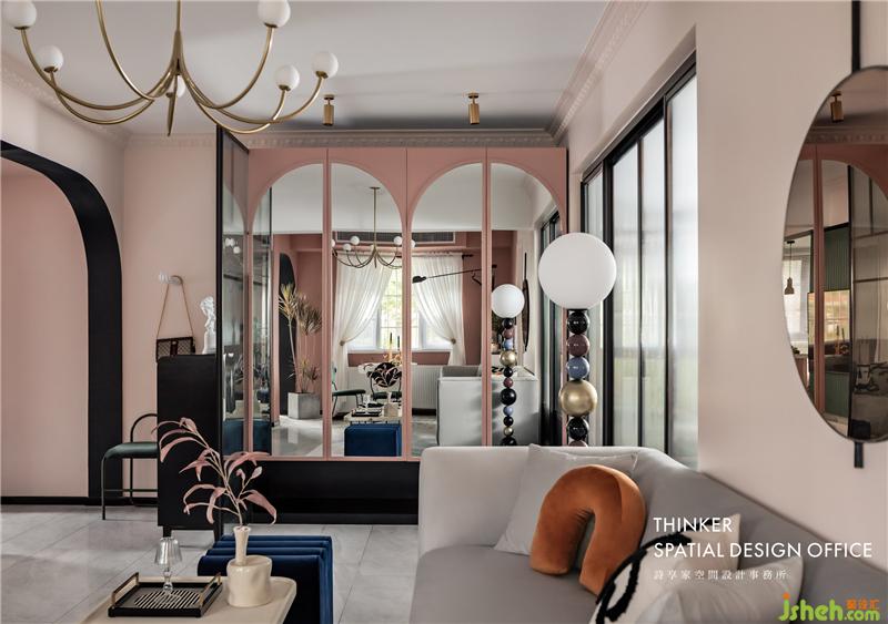 · 經(jīng)典的灰粉配色讓空間顯得年輕有活力,而材質(zhì)的質(zhì)感則很好地烘托出色彩的表現(xiàn)力,再點綴少量的寶藍(lán)和黑色,更顯時尚。