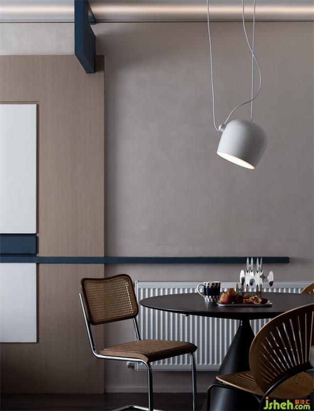 燈線裸露的氛圍燈,以飄逸姿態(tài)盤旋在餐桌上方,進(jìn)一步帶出輕快放松的用餐氛圍。