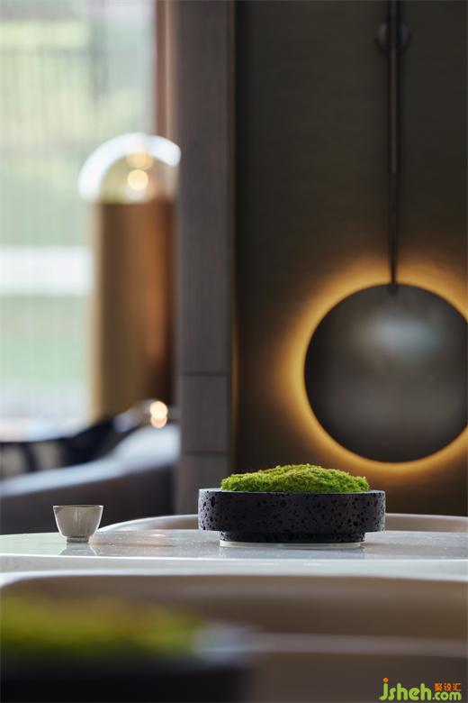 影壁上磅礴的「流水」呼應(yīng)著接待區(qū)「高山」的莊嚴(yán),空間動中有靜,靜默中不乏動勢,一動一靜間,令萬物的生命節(jié)奏躍然靈動于空間氣韻中。