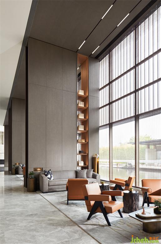 陽光透過玻璃照射進(jìn)來,書架上的書法小品、略帶俏皮的木化石圓幾、一捧小小的苔蘚、又或是一株清雅的文竹……柏悅公館營銷中心設(shè)計于傳統(tǒng)和當(dāng)代之間,解讀著待客空間的質(zhì)樸與圓融。