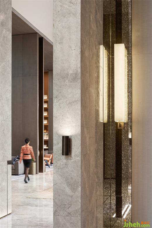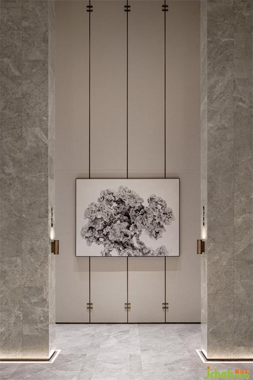 公共廊道通過小小端景創(chuàng)造著閑逸之趣,柏悅公館營銷中心設(shè)計(jì)以頑石、鉑晶太湖石、香爐、綠植點(diǎn)染不經(jīng)意地細(xì)微角落,當(dāng)代藝術(shù)的趣味靈動(dòng),豐盈著空間層次。