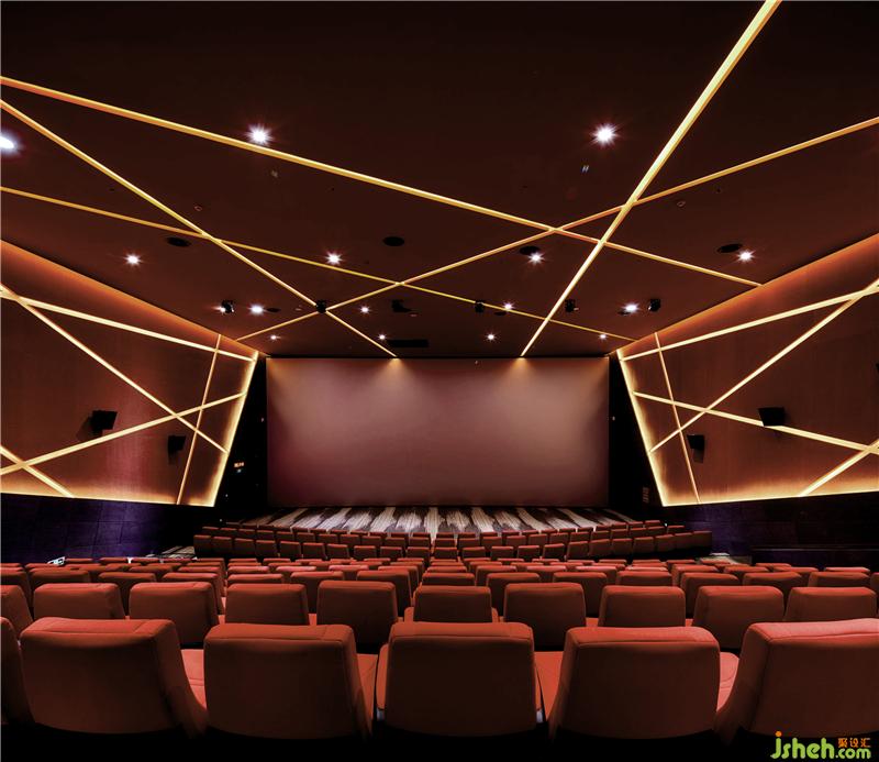 本項目位于一座商業(yè)廣場的三樓,是奧斯卡院線在鄭州的旗艦店,擁有一個兩層空高的前廳,介于規(guī)則與混亂之間的弧形展示墻背后隱藏著一個夾層結(jié)構(gòu),一樓是書吧與休息區(qū),二樓是一個電影主題餐吧。圓形前廳地面的黑白格子鋪裝看似簡單,卻是在古羅馬時期就已存在的鋪裝紋樣,它們與弧形景墻隨機(jī)的沖撞,迸發(fā)奇幻的視覺火花。圓形中島上方蒸汽時代的鐘塔與路標(biāo),以及頂端緩慢旋轉(zhuǎn)的小金人,彷如古老的中央車站,由此開啟一段兩小時的時空之旅。