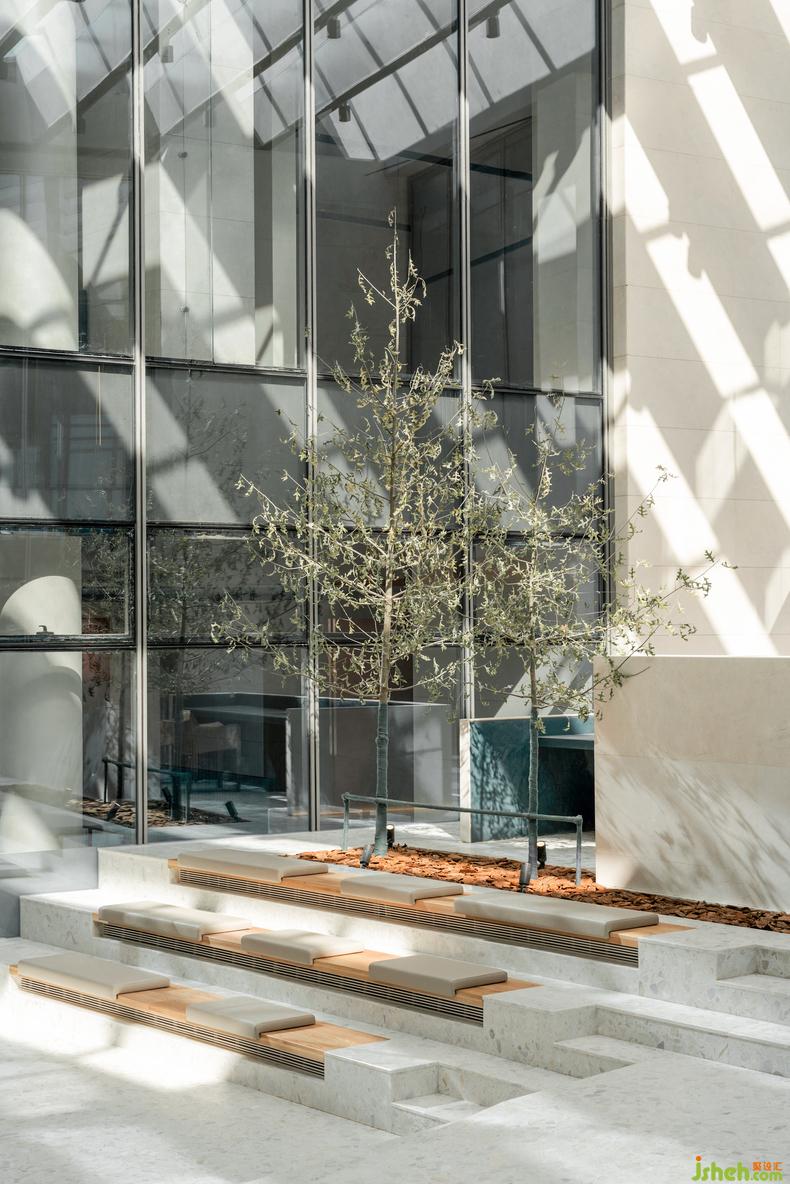 曾經(jīng)的濟(jì)南,泉水淙淙鎮(zhèn)日為伴,流動(dòng)意象滲入聽覺和意識(shí),柔軟整座城的心緒。當(dāng)現(xiàn)代主義的理性效率滲入生活、以利落筆觸改寫城市天際,該如何替建筑的理性添入抒情想象空間?水相設(shè)計(jì)企圖以泉城過(guò)往曲水垂柳的街戶風(fēng)貌,柔化當(dāng)代理性主義架構(gòu)的建筑,讓此空間匯入泉城72泉,成為第73號(hào)涓流的意象。