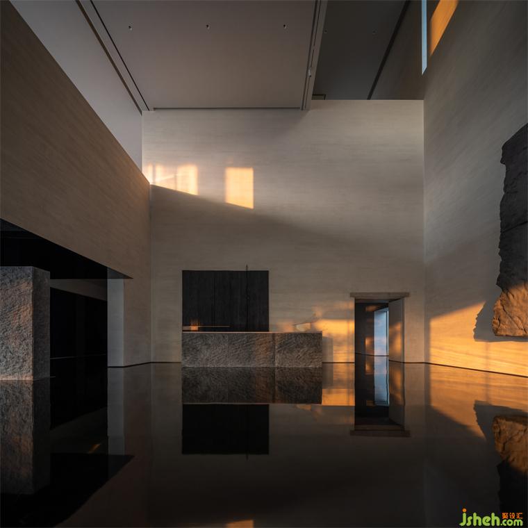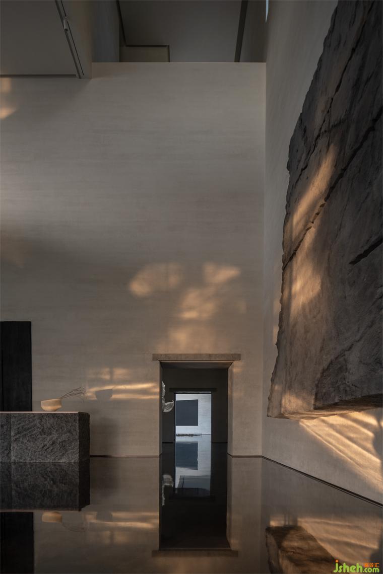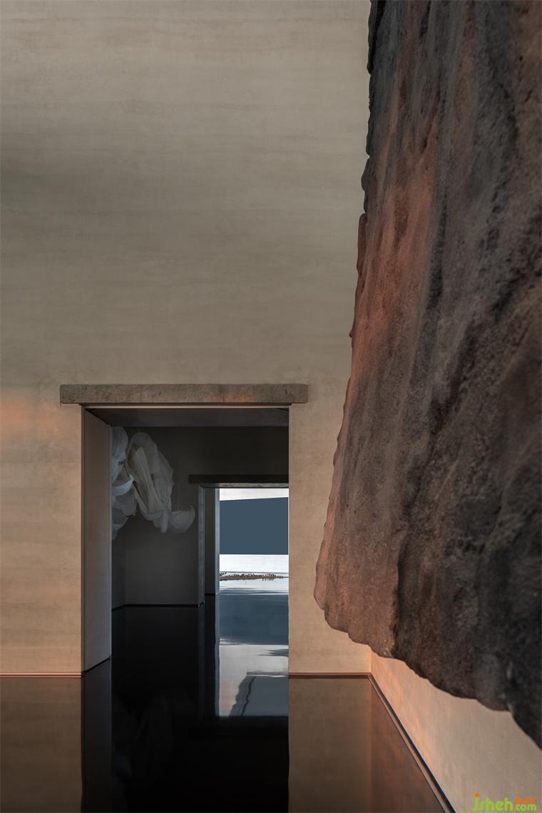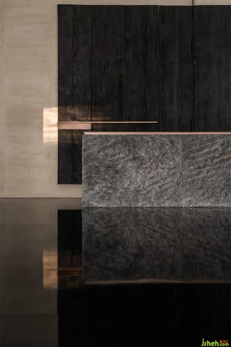 設(shè)計(jì)師以此為靈感,裝修設(shè)計(jì)入口以原石切砌山谷縱深,柜臺(tái)深鑿石面不僅作為建筑立面,亦為山壁寫意陳列,將自然奇石姿態(tài)化為體驗(yàn)自然的情緒轉(zhuǎn)折;入口如鐘擺規(guī)律擺晃的曳影裝修設(shè)計(jì),用最簡(jiǎn)語(yǔ)法呈現(xiàn)輕舟已過(guò)萬(wàn)重山、搖槳緩緩在水面畫出漣漪,最終仍隱淡于遙遠(yuǎn)山腳。