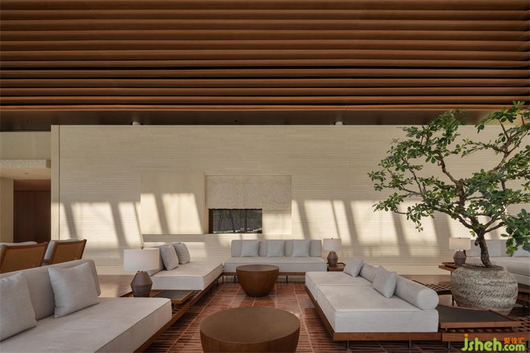 格局動(dòng)線致力于串連室內(nèi)外景觀及行為,凸顯野生地景滲入食衣住行的瞬息流動(dòng),同時(shí),因墻體減少、格局互通,過往聚落的緊密關(guān)系、居民直面質(zhì)樸分享生活,將再現(xiàn)成現(xiàn)代島嶼集會所的概念及氣氛,影響來自全國各地賓客卸下文明盔甲、縮短距離。