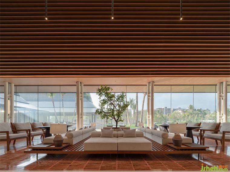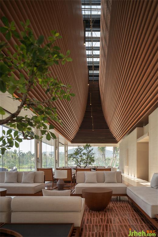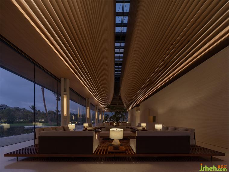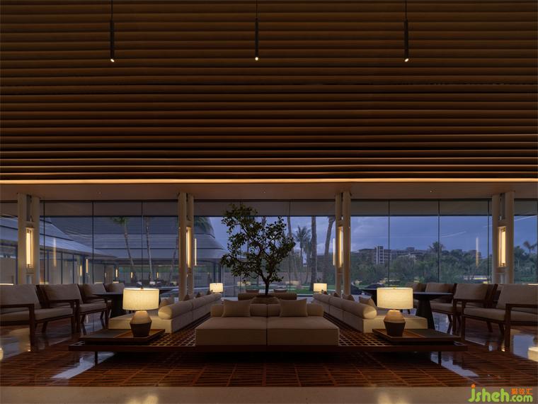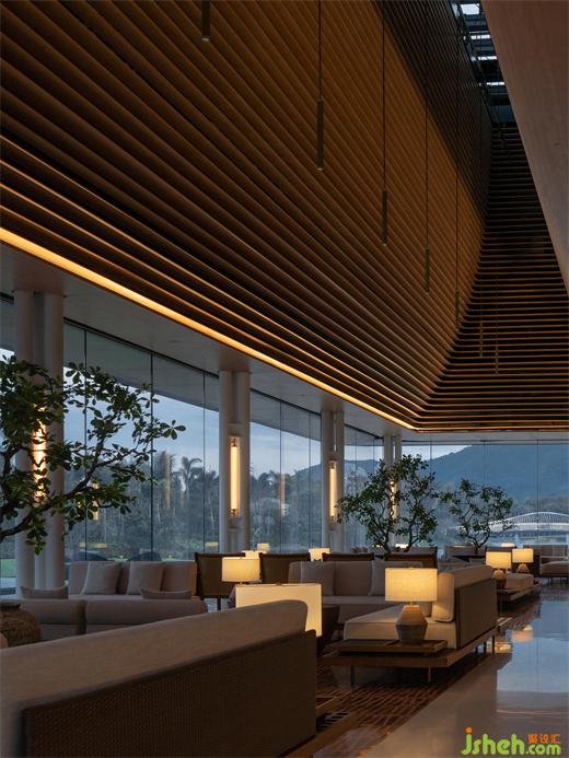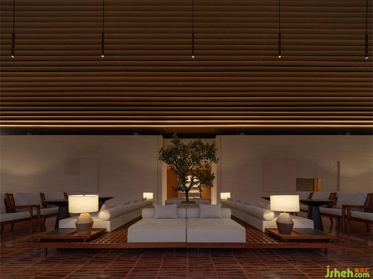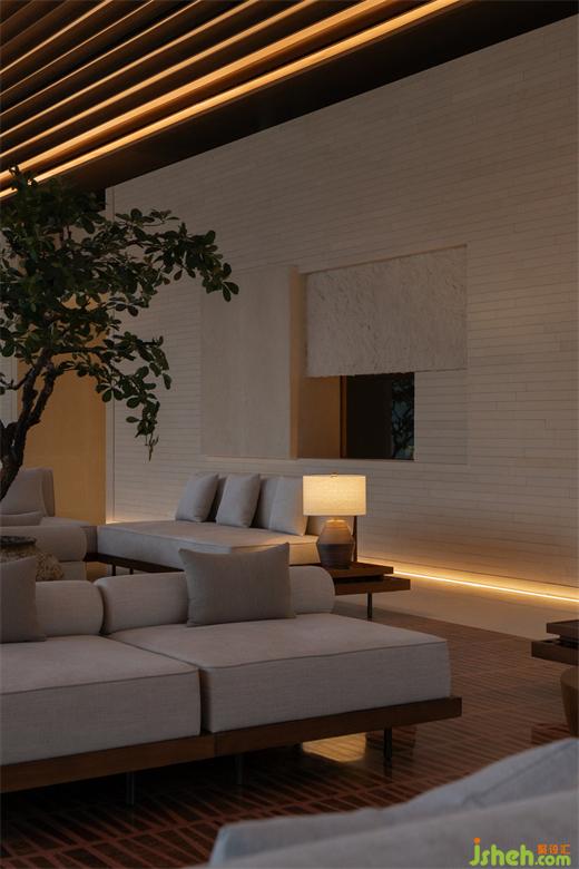從南島燦陽步入屋宇幽靜,天光明暗能順勢區(qū)分行為及氣氛,故人造光源錯(cuò)開活動(dòng)高度,退居陪襯,體驗(yàn)館裝修設(shè)計(jì)多以低矮桌燈、藏于圓柱間或高懸于屋頂,使目光所及感到含蓄安定。
