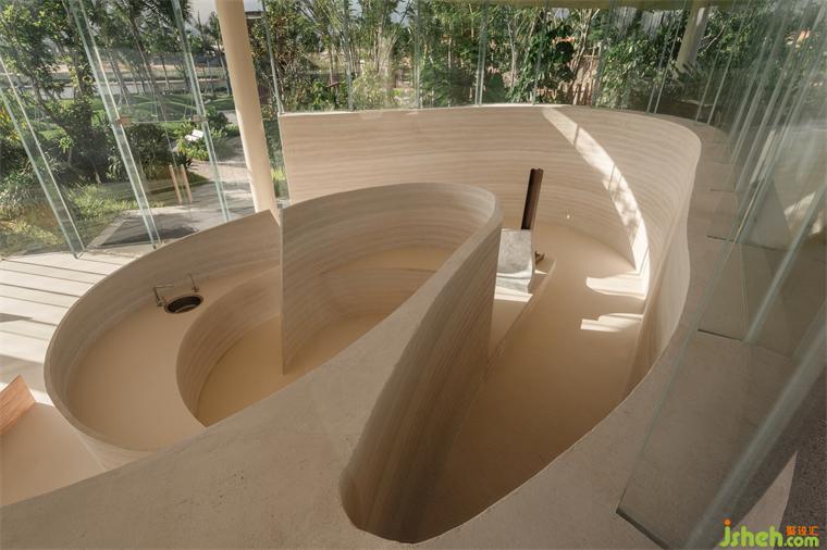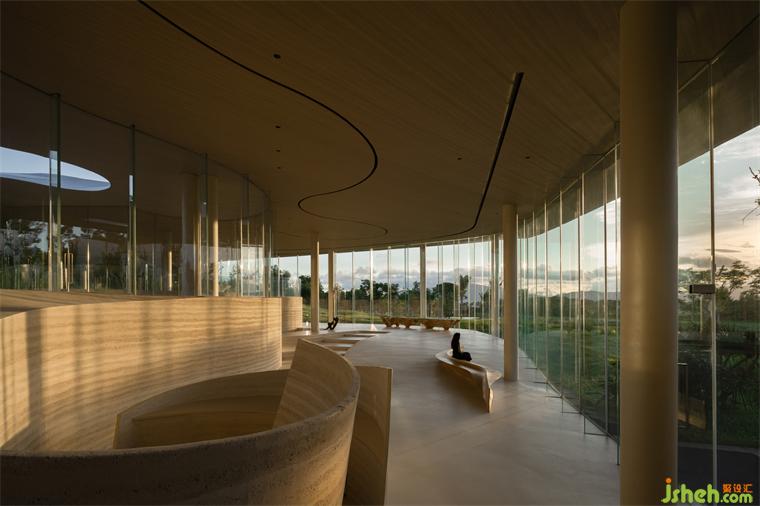 除此之外,它無斷面切割線的中性特質(zhì)更能放大延伸感,生態(tài)公園設計整體仿佛大自然隨性捏塑的大尺度雕刻,流暢連貫而使人感到安定。