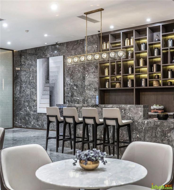The perfect combination of solid wood cabinet and marble, modern style, capable atmosphere, with calm and rational color, close the distance between customers and space.