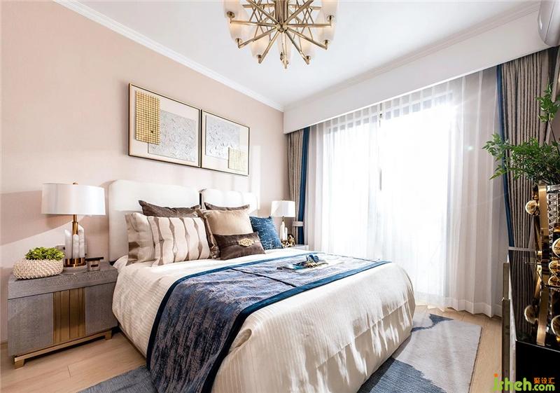 次臥做了整體的壁柜處理,與背景墻的顏色搭配的恰到好處。