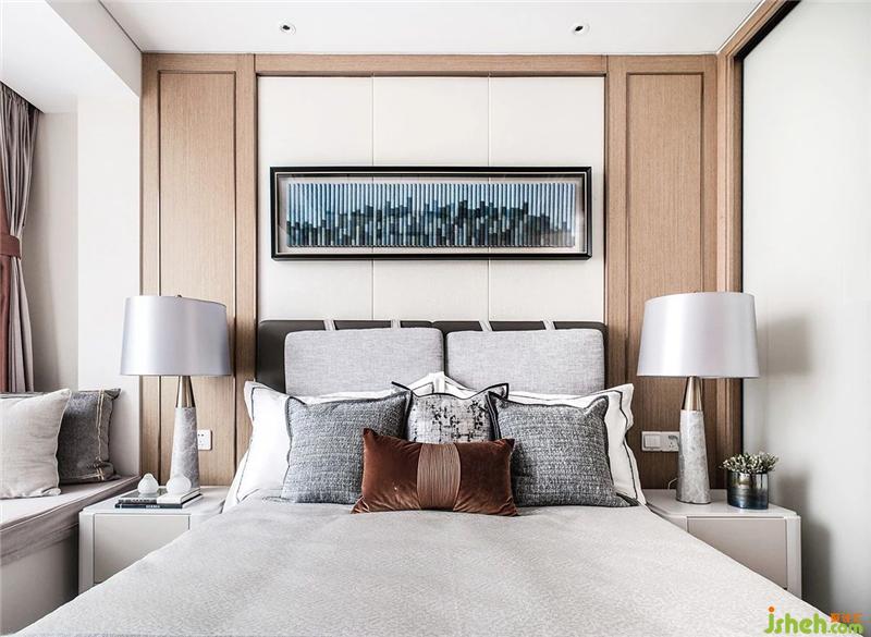 The overall space of the master bedroom is actually not large. The spacious bay window and the bedside wall are just right. Because of the vertical wood veneer background wall symmetrical design, even if the ceiling is ceiling and plaster line, the space will not be crowded.