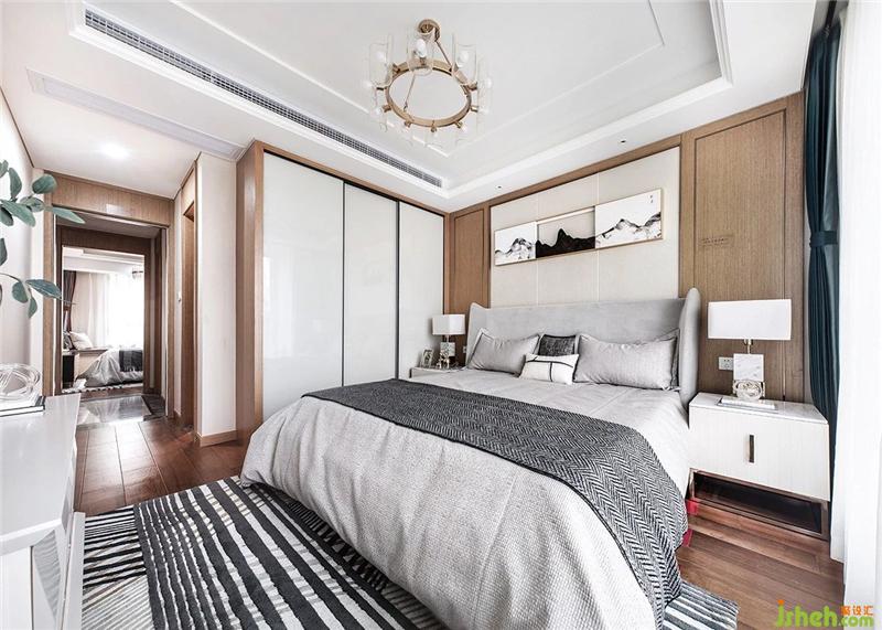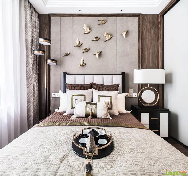 The bedroom refines the Chinese elements in the details and simplifies and enriches them. The wooden background wall is decorated with Chinese wallpapers. The lines make the space more stable and elegant. The language language is used to express the cultural connotation and create an extraordinary visual tension.