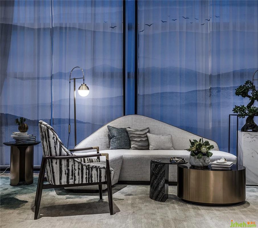 With the "mountain" as the carrier, with the metal bronze coffee table, echoing the chandelier above the sand table, instantly enhance the quality of the entire space, creating an elegant atmosphere combining mountains, wood and shadow...