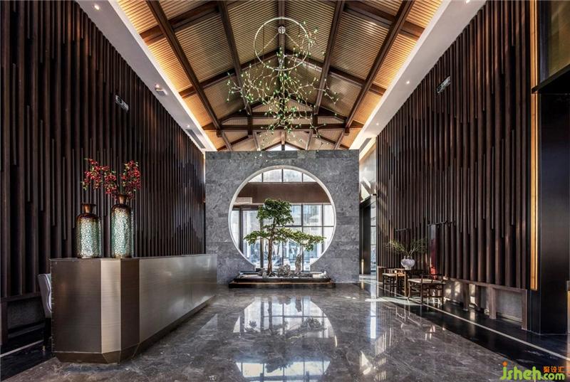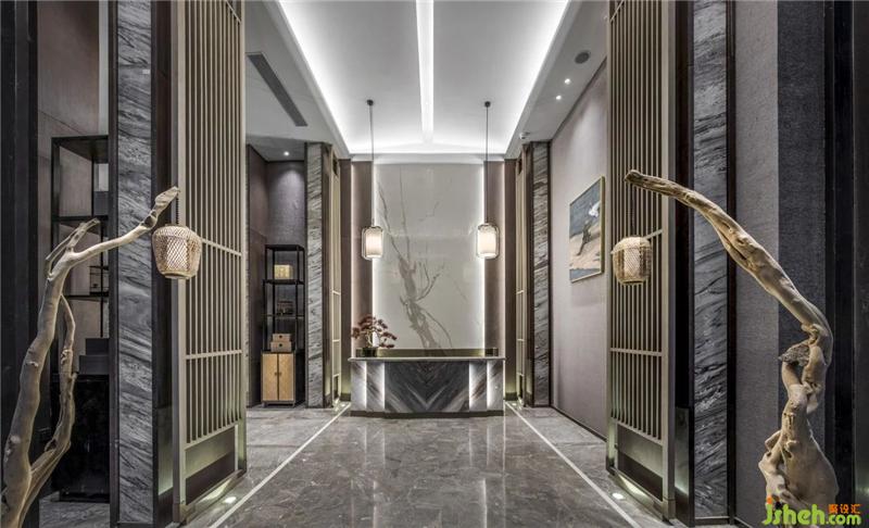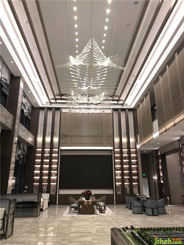 In the step-by-step sales control hall, the two weathered woods standing at the door are the most eye-catching. Weathered wood is a feng shui mascot. In the case of natural air drying, the tree retains the most primitive state, and the formed artwork is presented in the form of a lamp, which makes the space return to nature and return to the original.