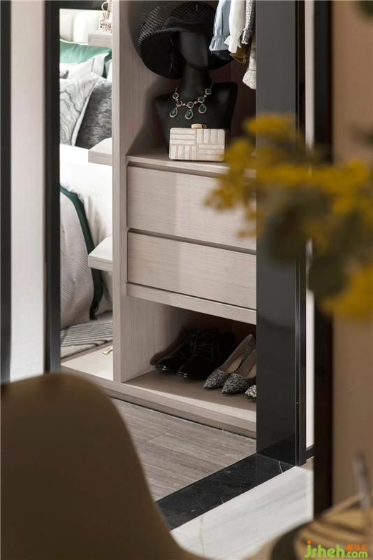 作為休憩的私密空間,舒適性是首要被考慮的問題。手工皮革床的啞光質感,樸質卻不失貴重。精致的吊燈也體現(xiàn)出細節(jié)上的講究。嵌入式衣柜,配置精致的衣服及飾品更增添生活氣息。樣板房設計