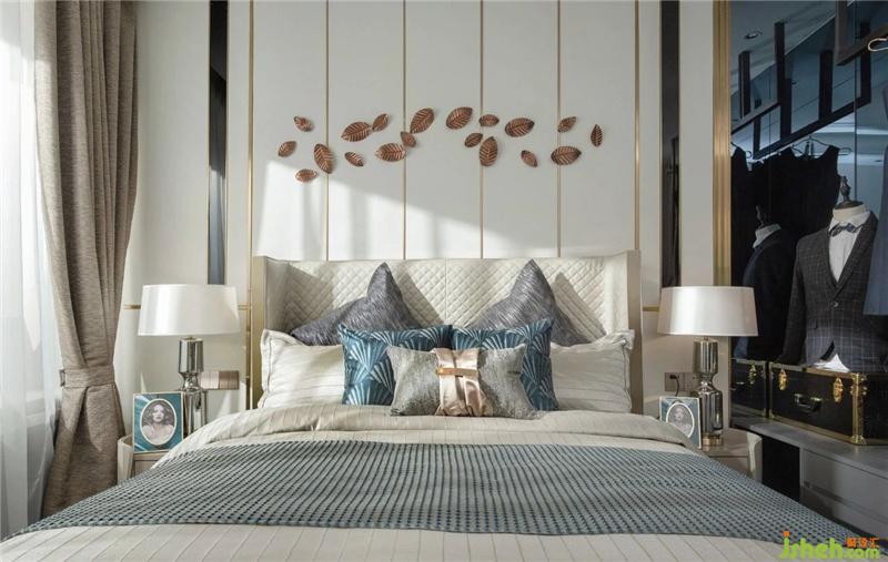 淡雅的色彩搭配干練的線條,以及幾末精致的藍(lán)色與金屬色的巧妙混搭,讓空間在輕奢的外表之下更是大大豐富了空間層次,不動(dòng)聲色地流露出靈魂中的優(yōu)雅。樣板房設(shè)計(jì)