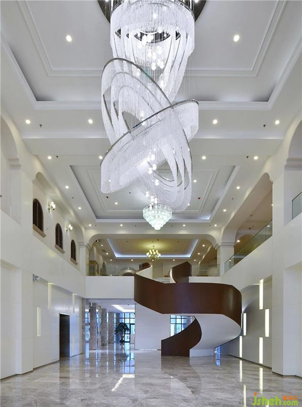 The cultural taste of the building. The space uses a lot of ancient castle gray stone, as well as agate jade, water-grain glass decorative material, soft decoration on this basis, the use of crystal chandeliers, stone special technology, more highlight the quality of space.