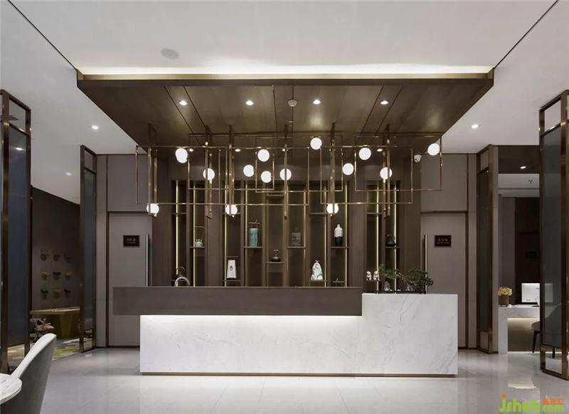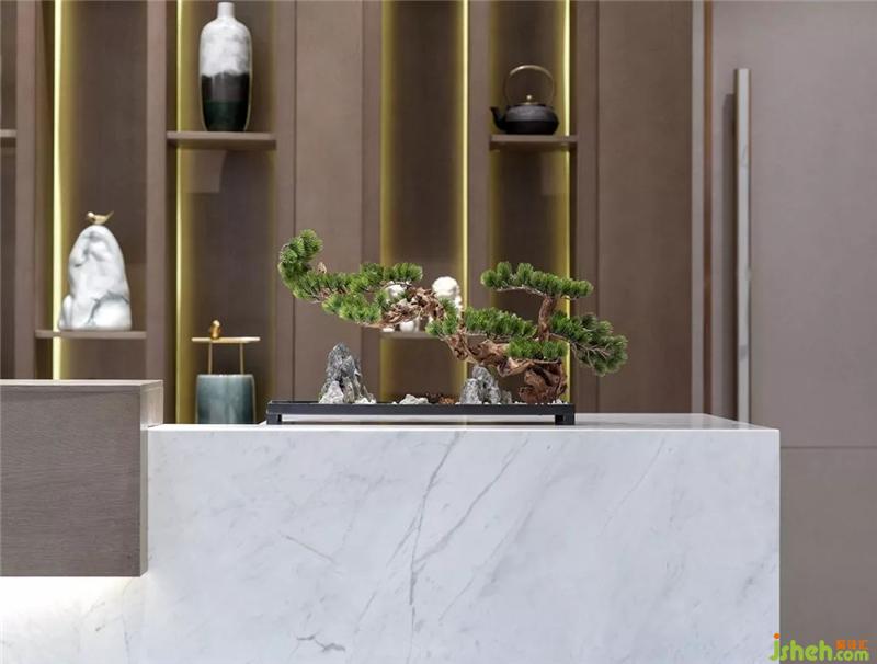 水吧區(qū)裝飾效果給人一種精致典雅的復(fù)古感,帶有灰色印花的大理石臺(tái)面增添了整個(gè)空間簡約大氣的精致美感,讓人印象深刻。室內(nèi)設(shè)計(jì)師