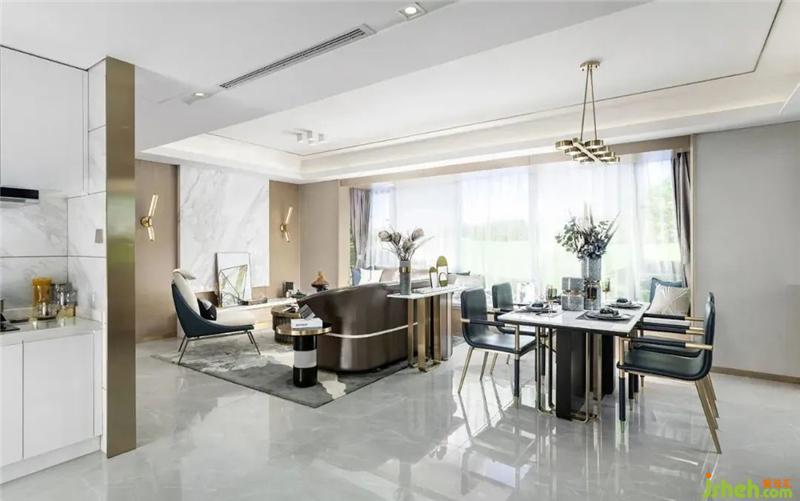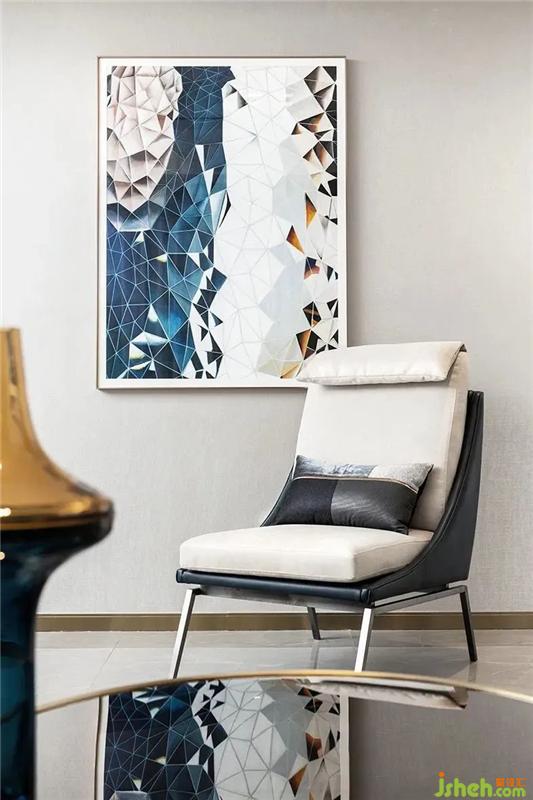 The color of the project is based on the metallic yellow and light gray lines, and the gray but bright blue system is added. The ripples do not lose the warmth of the home, at the same time the blue of the lake in Hangzhou and the yellow of the sunset.