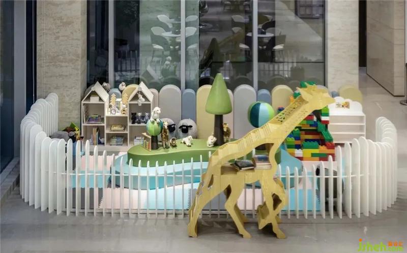 The children's recreation area will create a comfortable and safe recreation space. We will fully consider the safety issues in the selection of furniture, remove edges and corners, and choose soft bag furniture. Children are born artists, and colorful colors can inspire children's endless imagination. In addition, the hard-fitting wooden fence is combined with animal elements to increase interest.