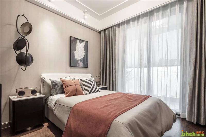臥室延續(xù)了整體空間的大地棕色,在主臥空間中顯得含蓄,靜謐。窗外景色正好,樹梢頭上,鳥兒淺唱,安謐意境莫不靜好,給予家的溫暖舒適。