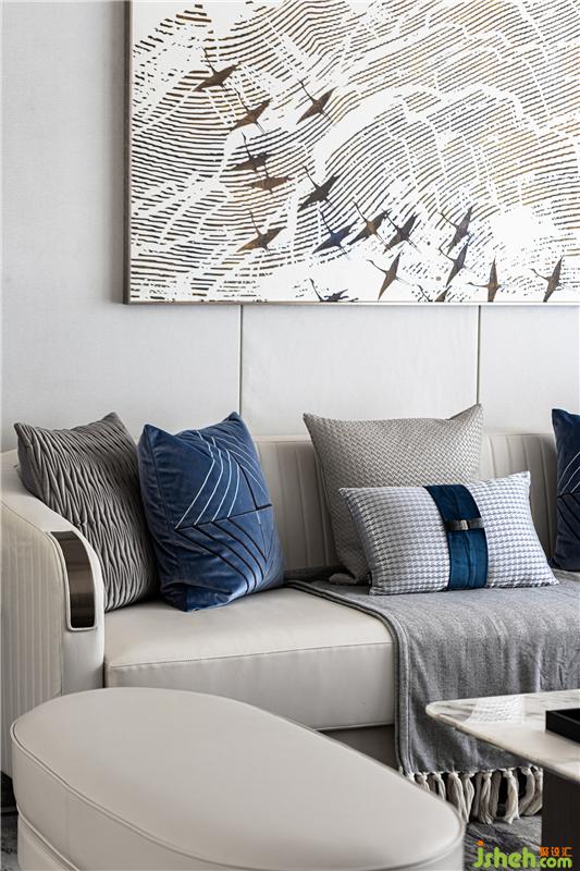 家承載著主人對于生活期許,我們選用淺色紋理背景墻、雅致的灰藍與淺色的基調(diào)挑起了空間的韻律美感,于光和影的對話里,散發(fā)空間的魅力。