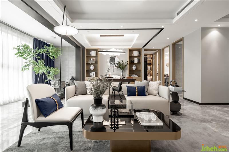 靛藍(lán)低飽和度的色調(diào),淡雅而不失活力大氣,有著極舒適的色彩視感,是營造舒緩氛圍居室空間的絕佳色彩。寧靜的格局觀感總是能輕易撫慰人們內(nèi)心的焦躁,營造一方清爽靈動的自由天地。新中式的家具和高品質(zhì)的材質(zhì),營造一個藝術(shù)、舒適、精致的生活空間。