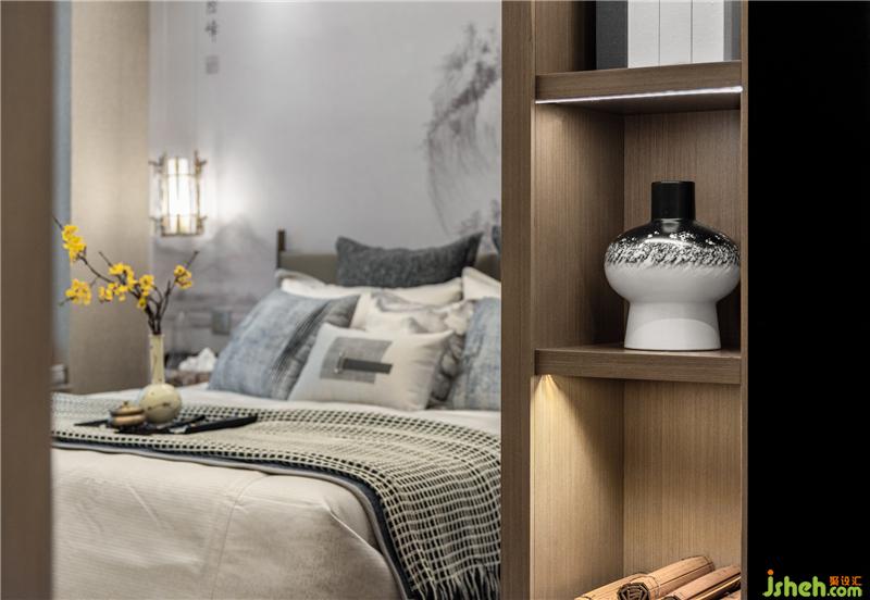 鳥兒在啼叫,床頭柜精致的禮盒,凸顯空間的品質(zhì)感,這些錯(cuò)落有序的擺放小品,都透著東方筆觸。人的一生約有三分之一的時(shí)間是睡眠狀態(tài)中度過的,作為睡眠場所的臥室,其環(huán)境營造十分重要,走進(jìn)主臥,給人的感覺舒適、質(zhì)感、品味。