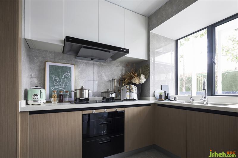 "唯有美食與愛不可辜負";餐廳延續(xù)了客廳的詩情綠意,精致的餐具錯落有致,四方餐桌與餐椅方正排列有序,有層次感的椅背搭配白色大理石臺面的餐桌,花瓶與餐布的綠,不多不少,整個用餐空間營造出自然健康舒適的氛圍。
