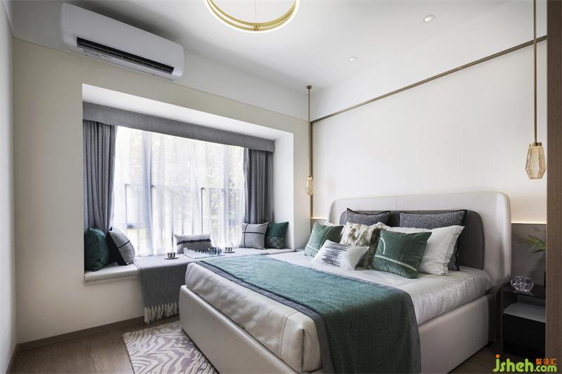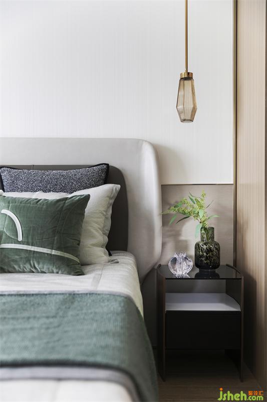 臥室是理性營造的積極生活所帶來的幸福空間。我們?nèi)砸砸荒ňG意為主調(diào),以柔軟的布藝柔化空間的感覺,提升空間的舒適度。木地板細膩柔和的光澤感,仿佛是添加了一層柔光濾鏡,床頭垂掛兩只極具藝術(shù)感的燈具,更加突顯臥室的風(fēng)情,溫暖而舒服的大床,自然在其中悄然演繹,與平靜有序的時光一同溫存出優(yōu)雅的韻味。