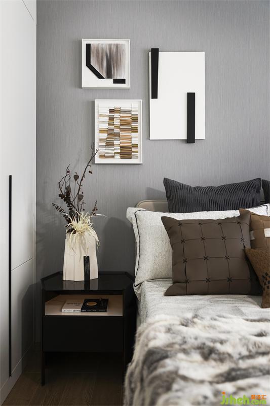 次臥空間將顏色的飽和度降低一度,更趨于強(qiáng)調(diào)空間的溫馨格調(diào)。高級(jí)灰打底,大地色系加以襯托,部分空間簡(jiǎn)練留白的表現(xiàn)手法在空間反復(fù)運(yùn)用,虛實(shí)之間,將生活的純粹完美呈現(xiàn)。