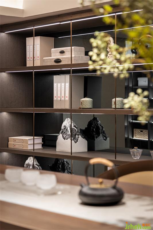 陳羽曾在《茶經(jīng)》里說(shuō)到喝茶的客數(shù),最適宜數(shù)三數(shù)五,他講“茶性儉,不宜廣,廣則其味淡?!?。茶室的淺色調(diào),配淺木色木地板及木格柵,軟裝則以重色家具和較低的茶臺(tái)調(diào)和空間沉穩(wěn)的調(diào)性。