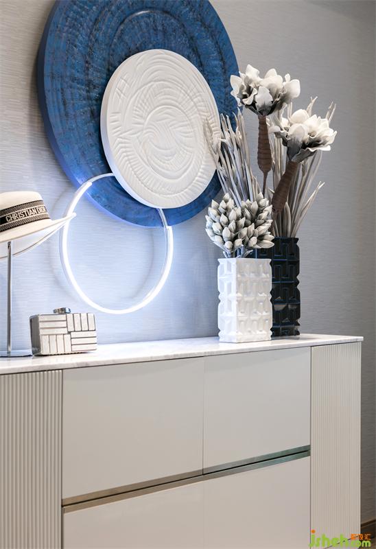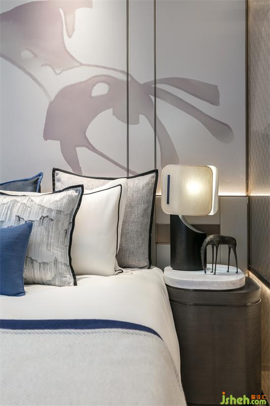 我們從陜西文化中重拾遺韻,于內(nèi)斂細(xì)微之處帶給主人親切怡人的地域感受,以富有層次的視覺韻律表達(dá)對(duì)精致生活的追求。主臥,在功能上集合了臥室,飄窗,衣帽間和主衛(wèi)的四件套。素雅精巧的家具陳設(shè)和的淡墨輕嵐的手繪畫卷營造出溫暖柔和的空間氣韻,在這里,中西元素自然相融,時(shí)而像一位淡泊明志的隱士,時(shí)而又化作一個(gè)鮮衣怒馬的少年。暖灰的理性,克制,胡桃木的溫潤,恬淡,香檳金的典雅,與藍(lán)色碰撞,賦予空間一絲華貴的氣息。