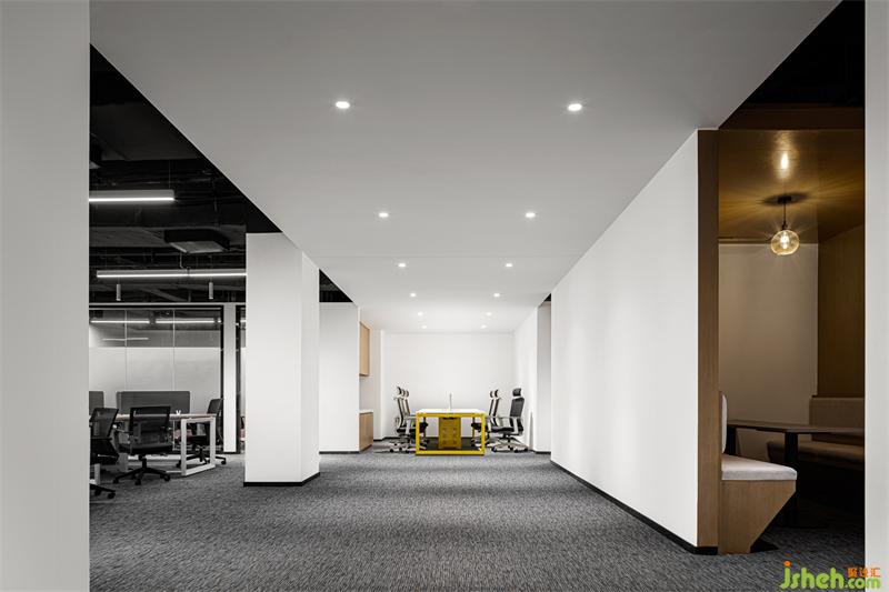 開敞辦公區(qū)統(tǒng)一采用玻璃隔斷,使辦公空間更加通透明亮,玻璃墻體窗口使不同區(qū)域的工作者保持自身空間舒適度的同時,也保持視線上的情感和需求連接。
