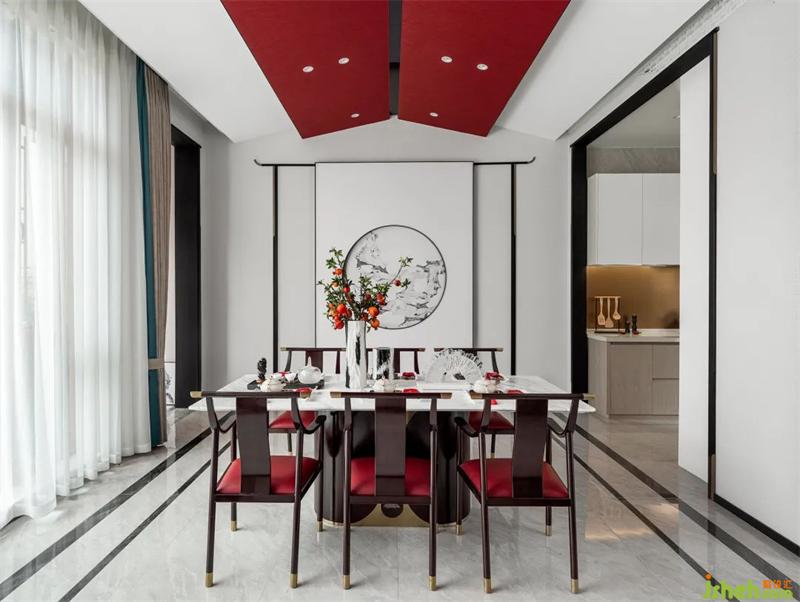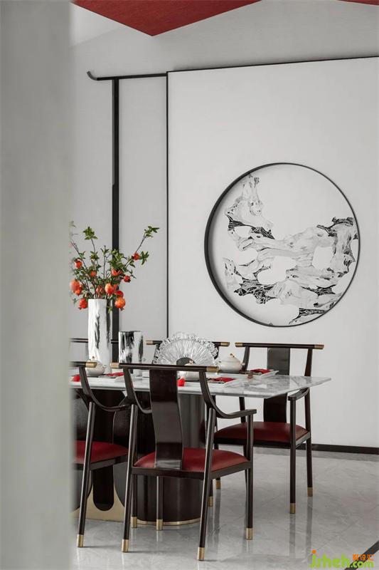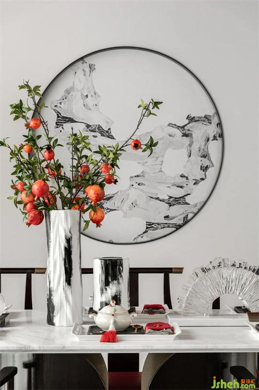 茶幾上的花瓶與擺飾品,花瓶里紅色花藝的點(diǎn)綴,讓整個空間都顯得格外的端莊。以夢為馬,不負(fù)韶華,透過歷史的年輪,我們看到過往歷久而彌 新,與其相輝映。