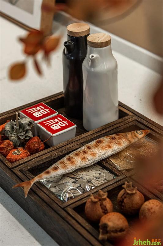 樣板間設(shè)計(jì)以美學(xué)和藝術(shù)品位來詮釋廚房概念,厚重的材質(zhì),凸顯質(zhì)感,空氣中彌漫著高級的煙火氣息。黑白色調(diào)的搭配,中和了橘與紅之間的距離感,讓整個空間更為協(xié)調(diào)。