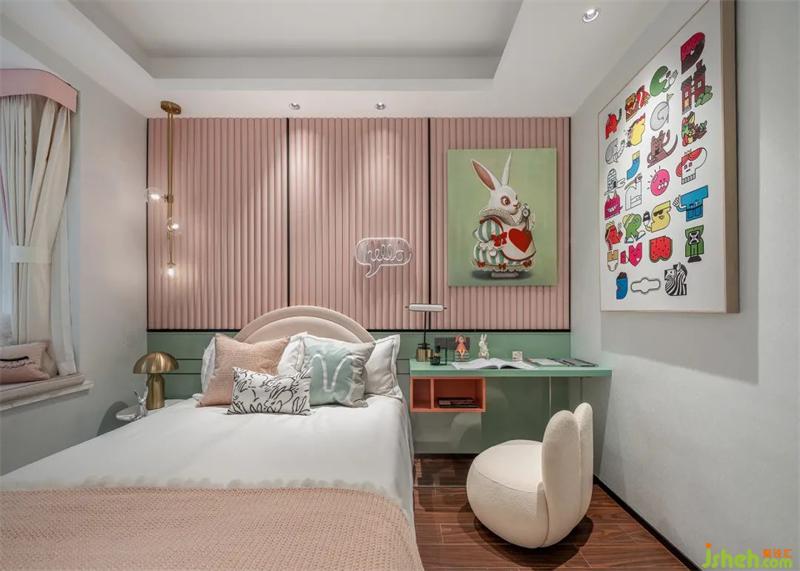 兒童房圍繞著彼得兔元素的空間營造,以明快的色彩渲染整個空間;少女心,兔子屋,精靈飛舞,帶上所有浪漫墜入異想空間,本站是彼得兔的童話世界。