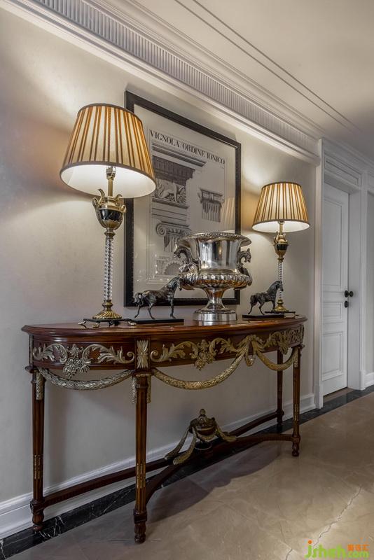 室內(nèi)連廊以藝術(shù)品和畫作精心點(diǎn)綴兩側(cè),營(yíng)造出多重混合視覺效果,走在每條連廊上,仿佛踏入靜謐、純凈的藝術(shù)空間。沙發(fā)桌選自美克美家的復(fù)興映像系列,具有歷史感的古老柱式結(jié)構(gòu)、希臘建筑中精美絕倫的葉片造型還有象征權(quán)威與力量的獅爪造型,這些經(jīng)典造型的運(yùn)用生動(dòng)再現(xiàn)了帝政風(fēng)格的古典與莊嚴(yán)。深厚的歷史底蘊(yùn),獨(dú)一無(wú)二的設(shè)計(jì),頂級(jí)的材料和一流的工藝,共同成就了卓爾不群的復(fù)興映象。