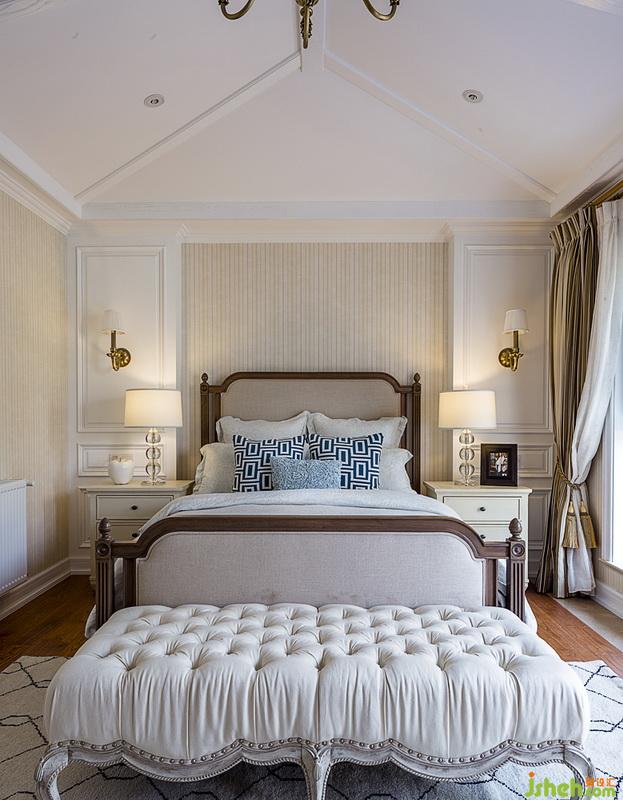床尾的布藝腳踏,通過(guò)簡(jiǎn)單優(yōu)美的曲線,營(yíng)造出優(yōu)雅的室內(nèi)氛圍。通過(guò)純手工雕刻和精美的涂飾效果形成空間層次,錯(cuò)落有致的主題,展現(xiàn)唯美的英式風(fēng)情。