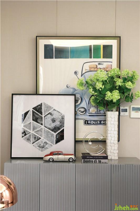▼房間內(nèi)隨處可見(jiàn)的古董車(chē)模型以及老爺車(chē)掛畫(huà),豐富空間層次且趣味十足,體現(xiàn)出別樣的復(fù)古藝術(shù)感。樣板房設(shè)計(jì)