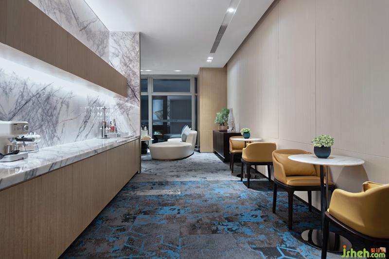 作為讓員工往返于休閑與工作的區(qū)域,茶水間設(shè)置在前臺背后。