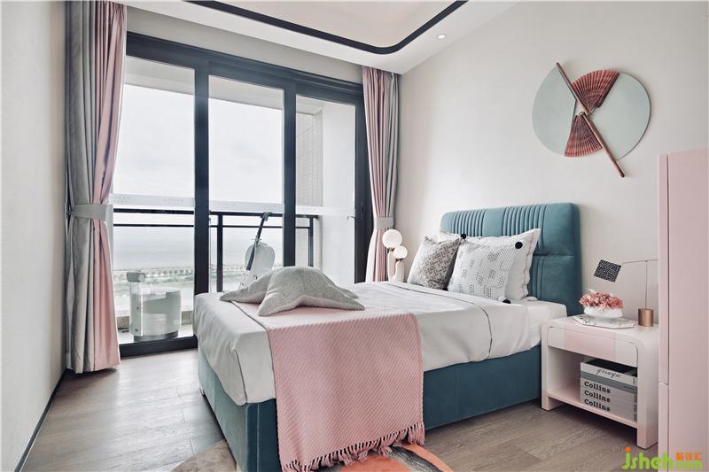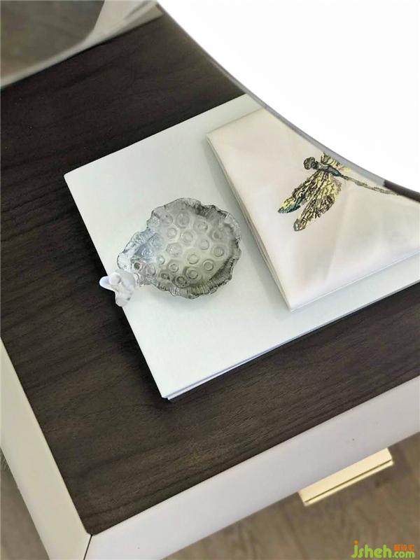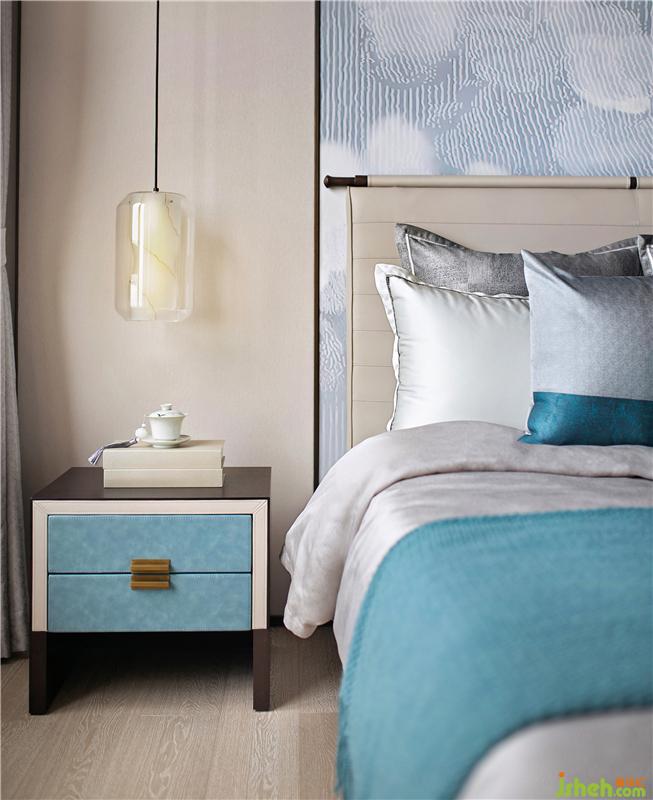光賦予空間以故事性,在時間流逝中,歷史的印記被銘刻在這一桌一椅、一花一瓶里。幾只蜻蜓在花影中嬉戲翻飛,環(huán)扣造型的床頭燈仿若扣住時光的年輪,演繹著一幕幕芳華歲月。樣板房設計
