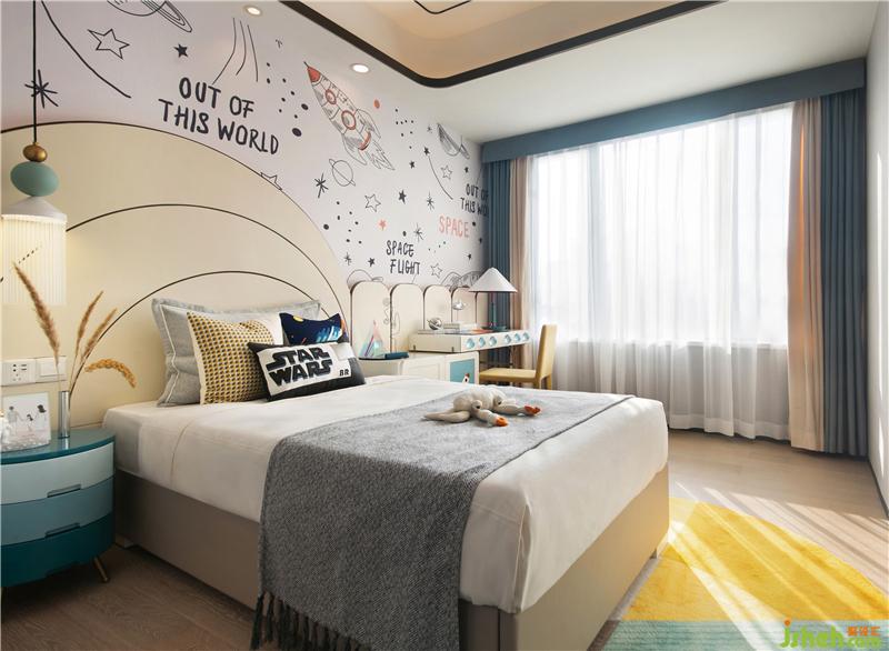 散發(fā)光暈的星球吊燈、宇航員擺件等充滿未來感的元素,仿佛置身神秘宇宙星球,營造出穿越未來的既視感。