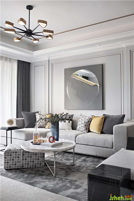 室內(nèi)設(shè)計(jì)師說:我們將現(xiàn)代建筑與洛可可風(fēng)融為一體,時(shí)尚、舒適的現(xiàn)代家具與古典的石膏雕塑和掛畫結(jié)合,點(diǎn)綴了一抹明艷的黃與熱情的紅,詮釋了一個(gè)更有韻味的現(xiàn)代簡約風(fēng)。既代表了現(xiàn)代前衛(wèi),又巧妙融合了復(fù)古典雅。以現(xiàn)代的手法詮釋了古典,張弛有度,為居者呈現(xiàn)一個(gè)有品味、有涵養(yǎng)的空間。