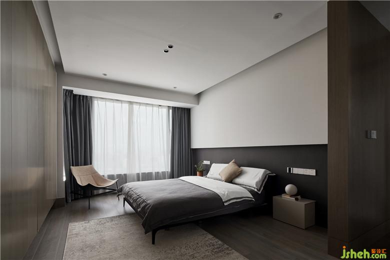 主臥室室內(nèi)設(shè)計師重新調(diào)整結(jié)構(gòu)布局,利用臥室較大的進(jìn)深,弱化了衣帽間的設(shè)計,增加了隱形衣柜,既實用又美觀。