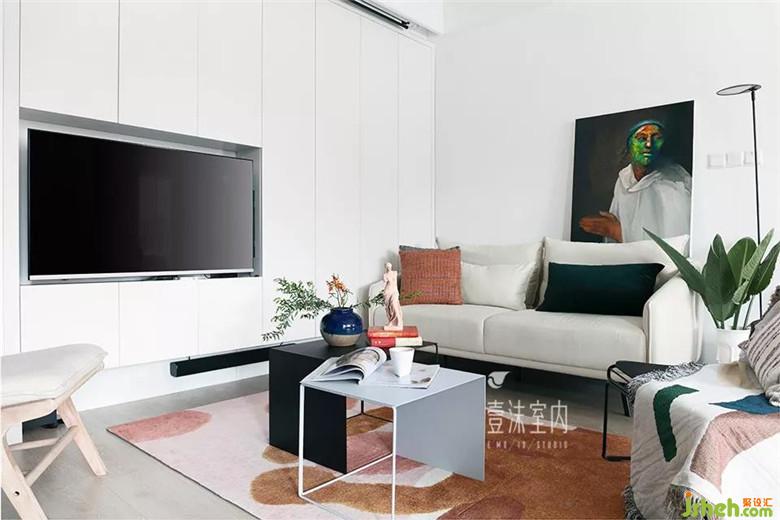 1、客廳同時(shí)考慮了電視機(jī)與投影,因公共空間儲(chǔ)物有限,客廳增加了一面儲(chǔ)物柜,電視嵌入到儲(chǔ)物柜內(nèi)部,考慮到在客廳看電視與玩游戲的舒適性,在電視背后增加了旋轉(zhuǎn)支架,全家需要看電視或者老公需要玩游戲的時(shí)候可以將旋轉(zhuǎn)支架旋轉(zhuǎn)90度正對(duì)客廳沙發(fā)。
