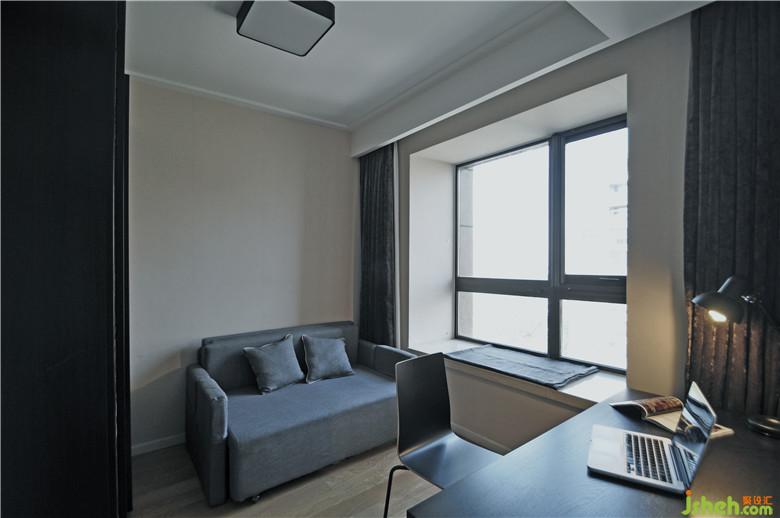 小臥室被用于做書房讓業(yè)主能在相對(duì)獨(dú)立的環(huán)境中辦公看書。通過(guò)書房沙發(fā)床的改變,同樣能夠滿足訪客來(lái)訪的居住需求。這樣既避免了床這樣的大家具在小空間中產(chǎn)生的占據(jù)感,同樣增加了空間的多樣性。