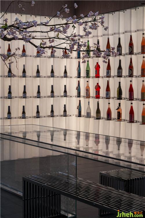 在項(xiàng)目的建造過程中,通過對(duì)空間本質(zhì)的探尋,尋找到了清酒與展示墻結(jié)構(gòu)單元的有機(jī)聯(lián)系,并以清酒的尺度為起點(diǎn)推理出了清酒擺放與展示墻結(jié)構(gòu)單元之間共通的秩序,蘇州店鋪設(shè)計(jì)借由結(jié)構(gòu)系統(tǒng)發(fā)展出的展示空間將清酒組織在一個(gè)純粹和諧的秩序中賦予現(xiàn)代性以靈光(Aura)。