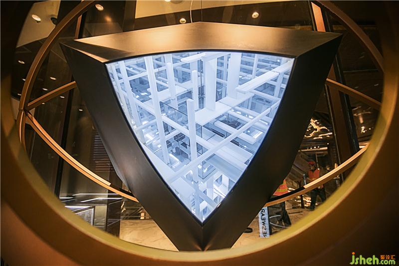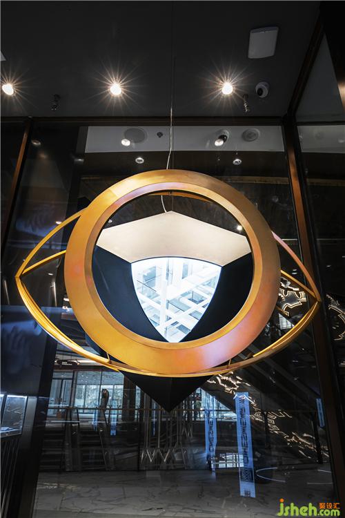 黑色盒子內(nèi)部為鏡面反射出的無限的場景,眼睛狀地金屬裝置環(huán)繞在盒子外,盒子開口處放置一些店內(nèi)的重點產(chǎn)品,起到一個在無限空間中產(chǎn)品被包裹的效果,同時也成為店面中的視覺驚喜和記憶點,巧妙地為空間注入未來感氣息,吸引來往的顧客。