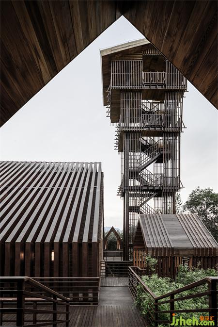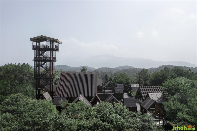 設計包含一座24米高的瞭望塔,一個多功能大廳,以及19個預制森林木屋。